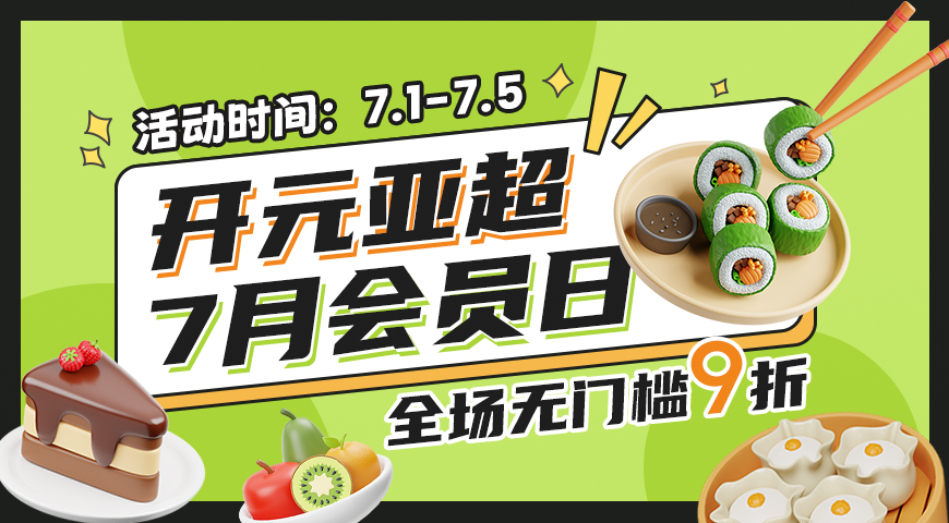 开元亚超会员日*7月盛典特惠*全场无门槛9折!