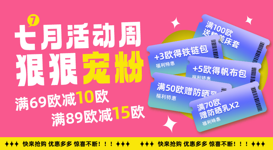 开元亚超七月活动周,全场实付满69欧立减10欧(限时购产品不参与)全场实付满89欧立减15欧